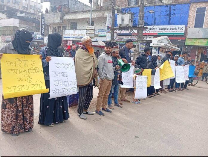 নলছিটি (ঝালকাঠি) প্রতিনিধিঃ ইনকিলাব মঞ্চের মুখপাত্র প্রায়ত শরিফ ওসমান হাদির সহোদর বোন মাসুমা হাদিকে ওসমান হাদির নির্বাচনি এলাকা ঢাকা -৮ আসনে সংসদ সদস্য প্রার্থী হিসেবে দেখতে তার জন্মস্থান ঝালকাঠির নলছিটিতে বিক্ষোভ ও মানববন্ধন করছে স্থানীয় সাধারণ ছাত্র আন্দোলন নেতৃবৃন্দ।শুক্রবার বেলা সাড়ে ১১টায় শহরের বাসস্টান্ডে শহীদ সেলিম চত্বরে স্থানীয় ছাত্র প্রতিনিধিরা প্লাকার্ড হাতে বিক্ষোভ,মানবন্ধন ও সমাবেশ করে। এসময় বক্তরা বলেন, ভারতীয় আগ্রাসন ও আধিপত্যবাদ বিরোধী নেতা ছিলেন শরিফ ওসমান হাদি।