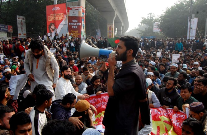 এ সময় তারা যান-চলাচল বন্ধ করে দেয়। এর আগে শুক্রবার সকালে ইনকিলাব মঞ্চের ভেরিফায়েড ফেসবুক পেজ থেকে শহীদ ওসমান হাদির রুহের মাগফিরাত কামনা ও খুনিদের বিচারের দাবিতে বাদ জুমা দেশব্যাপী দোয়া-মোনাজাত ও বিক্ষোভ মিছিলের আহ্বান জানানো হয়।