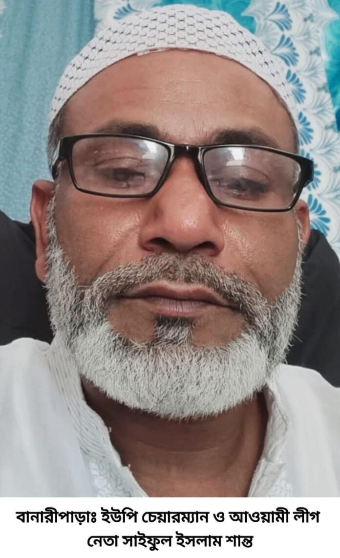 রাহাদ সুমন, বিশেষ প্রতিনিধি: বরিশালের বানারীপাড়ায় কার্যক্রম নিষিদ্ধ উপজেলা আওয়ামী লীগের কোষাধ্যক্ষ ও উপজেলার বিশারকান্দি ইউপি চেয়ারম্যান সাইফুল ইসলাম শান্তকে গ্রেফতার করেছে পুলিশ।