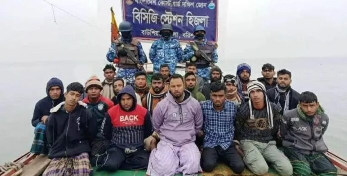বরিশালের হিজলায় মেঘনা নদীতে অবৈধভাবে বালু উত্তোলনকালে ৫৭টি ড্রেজার, ১টি ট্রলারসহ ২০ জনকে আটক করেছে বাংলাদেশ কোস্টগার্ড। এসময় তাদের কাছ থেকে ৪টি দেশীয় অস্ত্রও উদ্ধার করা হয়েছে। বুধবার (৩১ ডিসেম্বর) সকালে কোস্টগার্ডের মিডিয়া কর্মকর্তা লেফটেন্যান্ট কমান্ডার সিয়াম-উল-হক এক সংবাদ বিজ্ঞপ্তিতে এই তথ্য নিশ্চিত করেছেন।