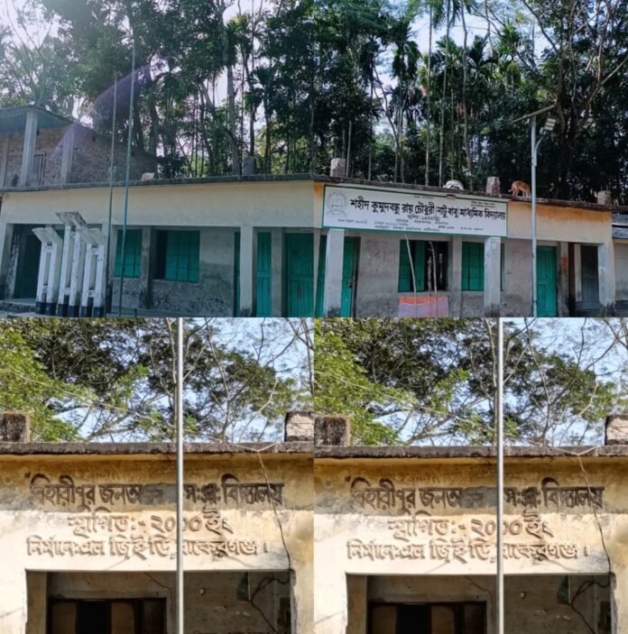 এবং বিহারীপুর সরকারি প্রাথমিক বিদ্যালয়ের প্রধান শিক্ষক মিজানুর রহমানের সাথে যোগাযোগ করা হলে তিনি জানান, আমি অসুস্থ থাকার কারণে স্কুলে যাইতে পারিনি এবং স্কুলের কাছাকাছি কাহাকেও পাইনি। তবে তিনিও আগামীকাল টানানোর প্রতিশ্রতি দেন।
