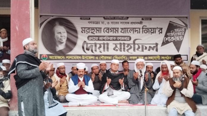 শুক্রবার বিকেলে ভোলার লালমোহন উপজেলা ও পৌরসভা বিএনপি এবং অঙ্গসহযোগি সংগঠনের আয়োজনে লালমোহন বালিকা মাধ্যমিক বিদ্যালয়ের মাঠে বেগম খালেদা জিয়ার রুহের মাগফিরাত কামনা উপলক্ষে অনুষ্ঠিত দোয়া মাহফিলে ভার্চ্যুয়ালী যুক্ত হয়ে প্রধান অতিথির বক্তব্যে এসব কথা বলেন তিনি। দোয়া মাহফিল পরিচালনা করেন করিম রোড জামে মসজিদের খতিব মাওলানা আব্দুল আউয়াল।