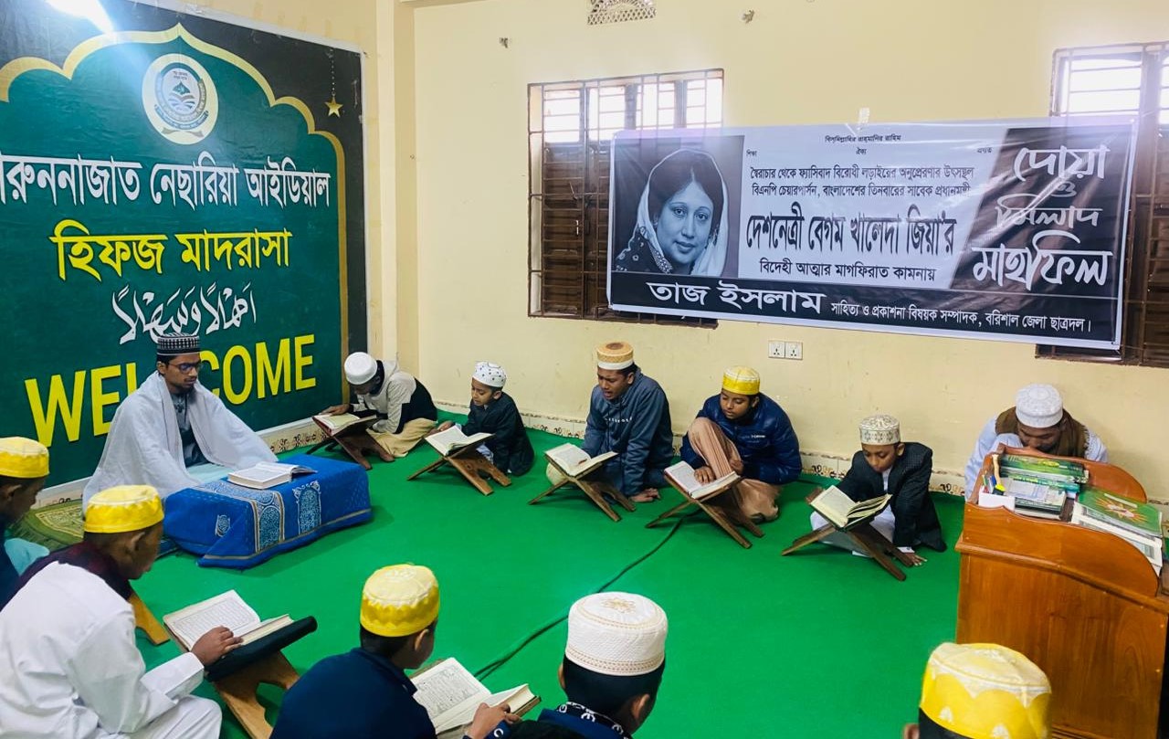 বরিশাল: স্বৈরাচার ও ফ্যাসিবাদ বিরোধী সংগ্রামের প্রেরণাস্থল, বাংলাদেশ জাতীয়তাবাদী দল (বিএনপি)-এর চেয়ারপার্সন, সাবেক প্রধানমন্ত্রী বেগম খালেদা জিয়ার বিদেহী আত্মার মাগফিরাত কামনায় বরিশাল জেলা ছাত্রদলের সাহিত্য ও প্রকাশনা বিষয়ক সম্পাদক তাজ ইসলামের উদ্যোগে কুরআনের পাখিদের নিয়ে পবিত্র কুরআন খতম এবং জুম্মা নামাজের পরে দোয়া ও মিলাদ মাহফিল অনুষ্ঠিত হয়েছে।