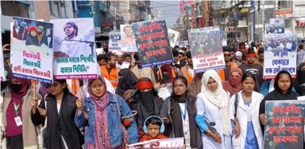 এরপর হত্যার বিচারের দাবিতে একটি মিছিল বের করে নগরের বিভিন্ন সড়ক প্রদক্ষিণ করে বটতলা চৌমাথা হয়ে নথুল্লাবাদে পৌছে। সদর রোডস্থ টাউন হল থেকে ছাত্র জনতার ব্যানারে মার্চ ফর হাদি শুরু করেন শিক্ষার্থী ও সাধারণ ছাত্র-জনতা। এ সময় বক্তারা বলেন, একাত্তরে যেমন মুক্তিযোদ্ধারা ক্ষতিগ্রস্ত হয়েছি তেমনি জুলাই আন্দোলনের যোদ্ধা ওসমান হাদির বিচার না হলে তাদেরও একই অবস্থা হবে।