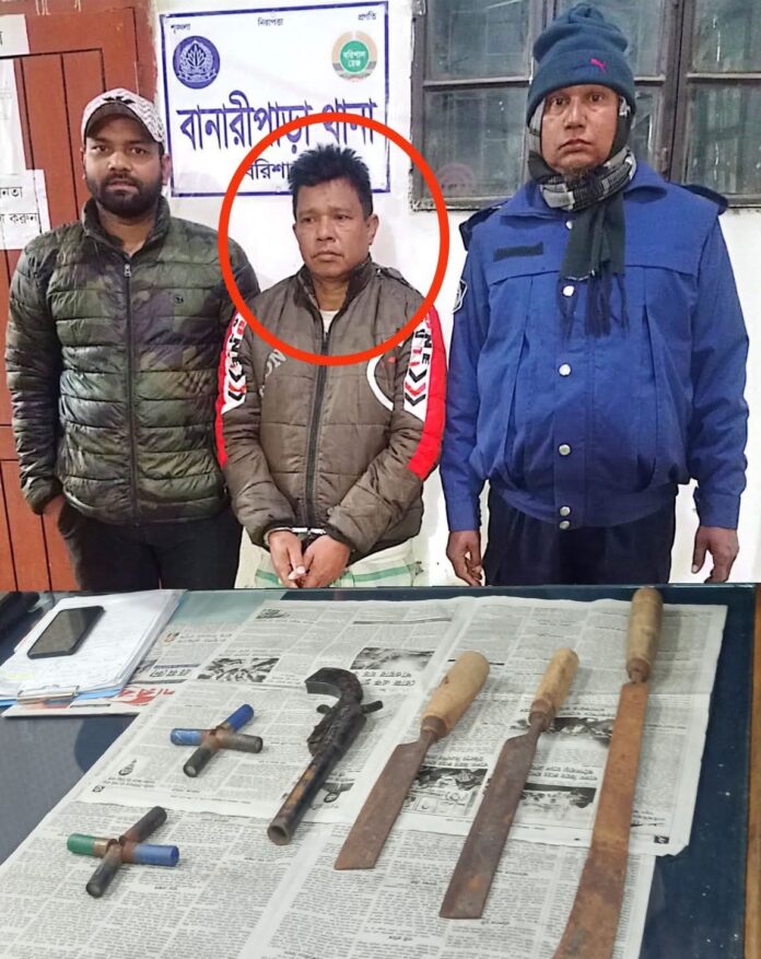 জানা গেছে, বুধবার (৭ জানুয়ারি) দিবাগত রাত সাড়ে ১০টার দিকে গোপন সংবাদের ভিত্তিতে বানারীপাড়া থানার ওসি মজিবর রহমানের নির্দেশনায় ও ইন্সপেক্টর (তদন্ত) শতদল মজুমদারের নেতৃত্বে পরিচালিত বিশেষ অভিযানে উপজেলার সৈয়দকাঠী ইউনিয়নের আউয়ার গ্রামের বাড়ি থেকে আওয়ামী লীগ নেতা তারিকুল ইসলাম (তারেক) কে গ্রেফতার করা হয়। এ সময় একটি পাইপগান, ৮টি কার্তুজ, দুটি ছেনি ও একটি রামদা উদ্ধার করা হয় বলে জানিয়েছে পুলিশ।