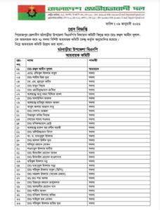 প্রেস বিজ্ঞপ্তিতে আরও উল্লেখ করা হয়, কেন্দ্রীয় নির্দেশনা অনুযায়ী আহ্বায়ক কমিটি নির্ধারিত সময়ের মধ্যে পূর্ণাঙ্গ কমিটি গঠনের উদ্যোগ নেবে এবং দলীয় শৃঙ্খলা ও আদর্শ বজায় রেখে রাজনৈতিক কর্মসূচি বাস্তবায়ন করবে।