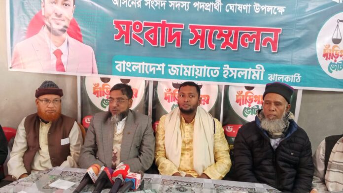 ঝালকাঠি প্রতিনিধি,মো: মেহেদী হাসান: ঝালকাঠি-১ (রাজাপুর-কাঁঠালিয়া) আসনে বাংলাদেশ জামায়াতে ইসলামীর মনোনীত প্রার্থী হিসেবে ড. ফয়জুল হকের নাম ঘোষণা ও নির্বাচনী পরিকল্পনা তুলে ধরতে কাঁঠালিয়া প্রেসক্লাবে এক জনাকীর্ণ সংবাদ সম্মেলন অনুষ্ঠিত হয়েছে। শনিবার (১০ জানুয়ারি) দুপুরে আয়োজিত এই সংবাদ সম্মেলনে তিনি এলাকার উন্নয়নে তার ভবিষ্যৎ রূপরেখা ও বিশেষ নির্বাচনী অঙ্গীকার ব্যক্ত করেন।
