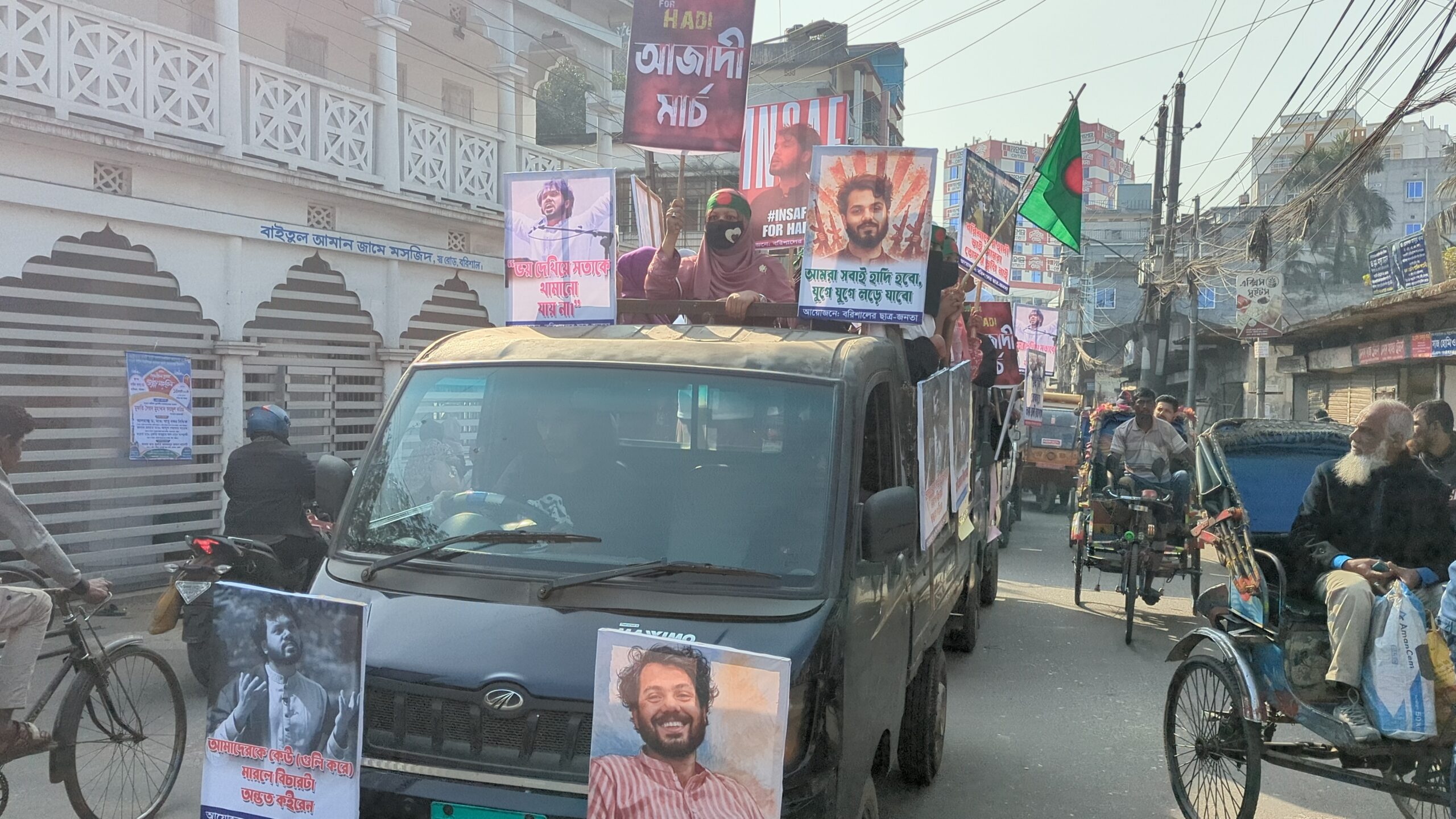 এ সময় হাদি হত্যার বিচার দাবি নিয়ে সাধারণ মানুষও বিক্ষোভে অংশ নেয়। পরে ব্যাটারিচালিত ভ্যানগাড়ি, মোটরসাইকেল এবং পিকআপযোগে আজাদি মার্চ কর্মসূচি শুরু করে ছাত্র-জনতা। অশ্বিনী কুমার টাউন হলের সামনে থেকে বের হওয়া আজাদি মার্চ শহরের প্রধান প্রধান সড়ক প্রদক্ষিণ করে পুনরায় টাউন হলের সামনে গিয়ে শেষ হয়। এর আগে বিক্ষোভ সমাবেশে অংশগ্রহণকারী শিক্ষার্থীরা জানান, আমার ভাই মৃত্যু আগে বলে গেছেন, ‘আমার খুনির বিচারটা একটা আপনারা কইরেন’।