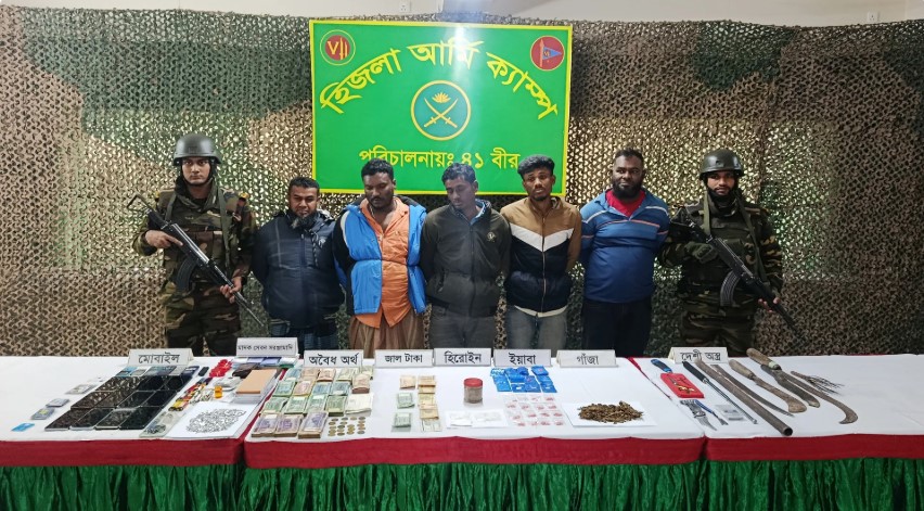 উল্লেখ যে বাংলাদেশ সেনাবাহিনীর মাদকবিরোধী অভিযান এবং অবৈধ অস্ত্র উদ্ধারের অংশ হিসেবে উক্ত অভিযান পরিচালনা করা হয়। আটক অপরাধীদের বিরুদ্ধে আইনানুগ ব্যবস্থা গ্রহণ প্রক্রিয়াধীন রয়েছে।