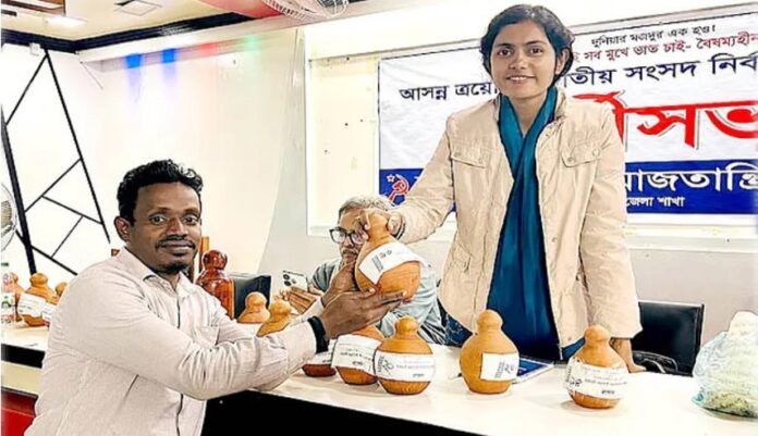 বরিশাল-৫ (সদর) আসনের প্রার্থী মনীষা চক্রবর্তী সিটি করপোরেশনের পর এবার জাতীয় সংসদ নির্বাচনের ব্যয়ও মেটাবেন অনুদানের টাকায়। তিনি শ্রমজীবীদের কাছ থেকে মাটির ব্যাংকে টাকা সংগ্রহ করছেন। পাশাপাশি বিকাশ ও ব্যাংক অ্যাকাউন্টের মাধ্যমেও অনুদান নিচ্ছেন।