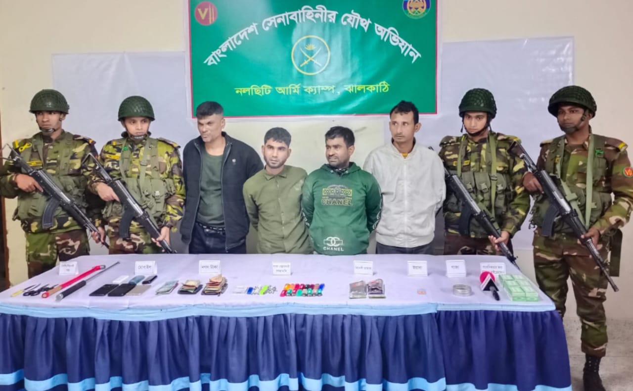 ঝালকাঠির নলছিটিতে সেনাবাহিনীর অভিযানে ৪ জন মাদক কারবারীকে গ্রেফতার করা হয়েছে।