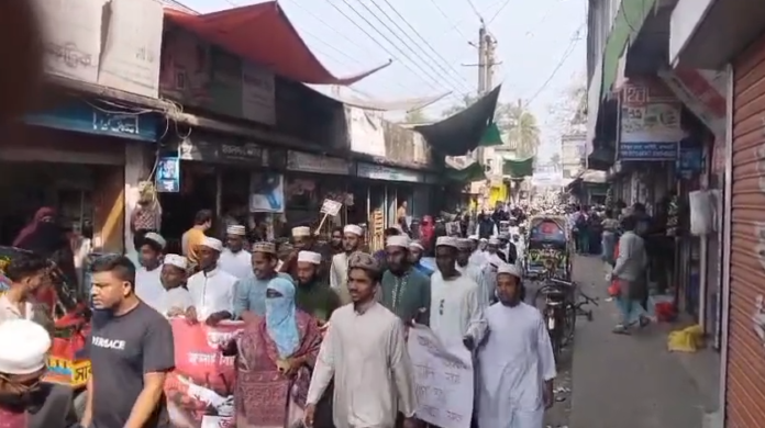 এসময় তিনি বলেন, হাদি আধিপত্যবাদ বিরোধী হুংকার দিয়ে অপ শক্তির বুকে কাঁপোন ধরিয়ে দিয়েছিল। কিন্তু দেশী বিদেশী ষড়্যন্ত্রকারীরা আমার ভাইয়ের জীবন প্রদীপ নিভিয়ে দিল। পরে বিক্ষোভ মিছিলটি মাদ্রাসা ক্যাম্পাস থেকে শুরু হয়ে শহরের গুরুত্বপূর্ণ সড়ক প্রদিক্ষণ শেষে বাসস্টান্ড এলাকায় এসে এক পথসভায় সভায় মিলিত হয়।