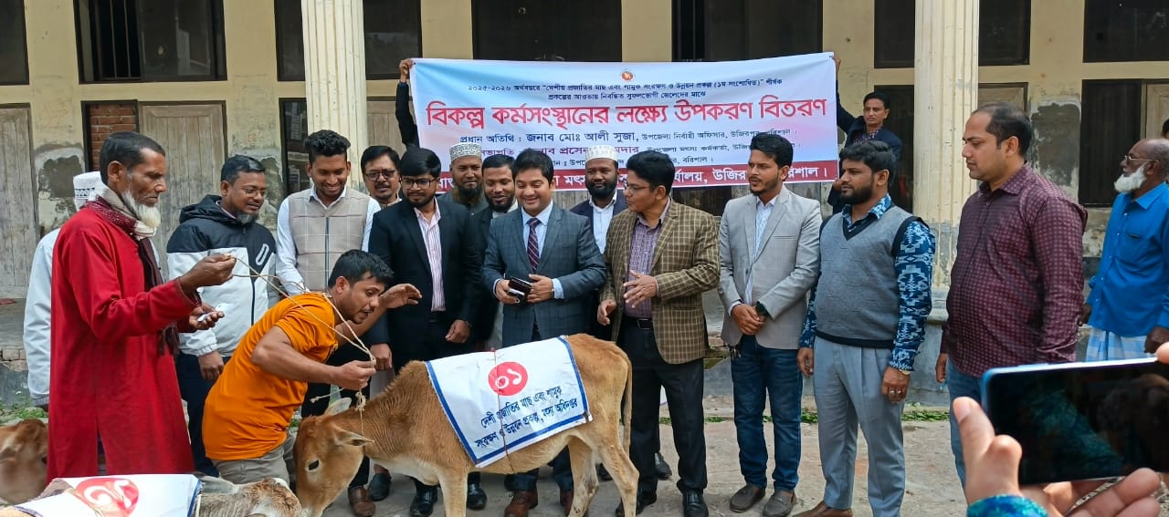 মোঃ জুনায়েদ খান সিয়াম, উজিরপুর (বরিশাল) প্রতিনিধি : বরিশালের উজিরপুরে বিকল্প কর্মসংস্থান সৃষ্টি ও জীবনমান উন্নয়নের লক্ষ্যে অসচ্ছল জেলেদের মাঝে গরু বিতরণ করা হয়েছে। সোমবার (২৬ জানুয়ারি) বেলা ১০টায় উপজেলার পরিষদ চত্বরে এ গরু বিতরণ কার্যক্রম অনুষ্ঠিত হয়। উপজেলা মৎস্য কর্মকর্তা প্রসেন মজুমদারের সভাপতিত্বে অনুষ্ঠানে প্রধান অতিথি হিসেবে উপস্থিত থেকে ৬০ জন জেলের হাতে গরু তুলে দেন উপজেলা নির্বাহী কর্মকর্তা মোঃ আলী সুজা।