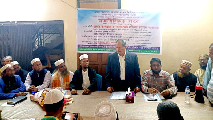 সভায় ধানের শীষের প্রার্থী মজিবর রহমান সরোয়ার ইবতেদায়ি শিক্ষাব্যবস্থা ও শিক্ষকদের জন্য উন্নয়নমূলক কাজ করার আশ্বাস দেন বলেও অভিযোগ উঠেছে।