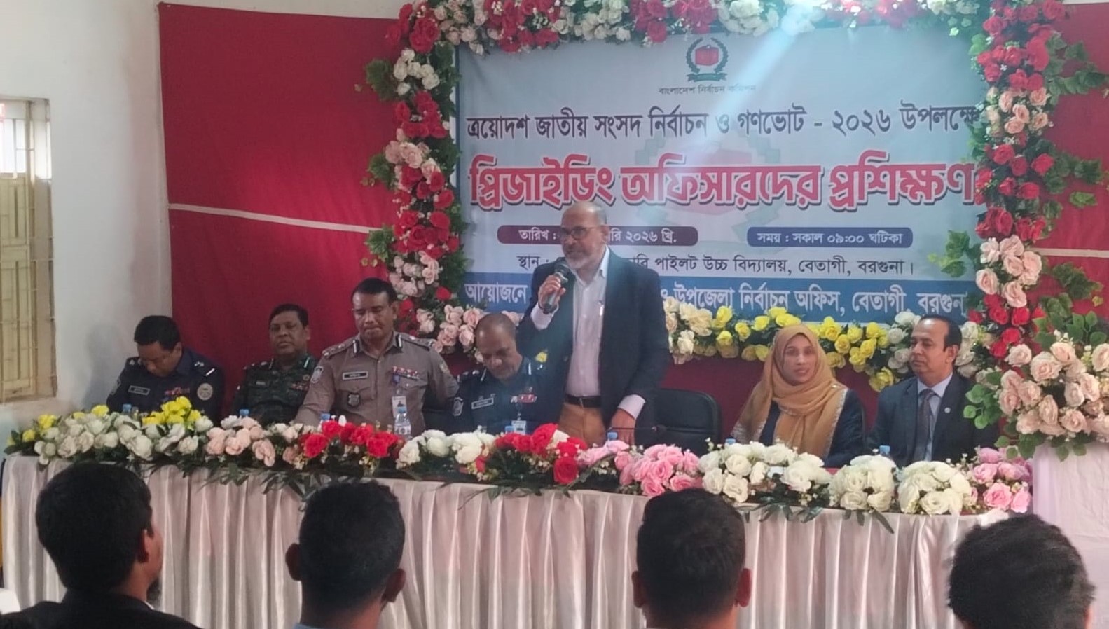 বেতাগী প্রতিনিধি : সুষ্ঠু, অবাধ ও গ্রহণযোগ্য নির্বাচন অনুষ্ঠানে বরগুনার বেতাগীতে ত্রয়োদশ জাতীয় সংসদ নির্বাচন ও গণভোট-২০২৬ উপলক্ষ্যে ভোটগ্রহণ কর্মকর্তাদের দুই দিনব্যাপী প্রশিক্ষণ কর্মশালা অনুষ্ঠিত হয়েছে।
