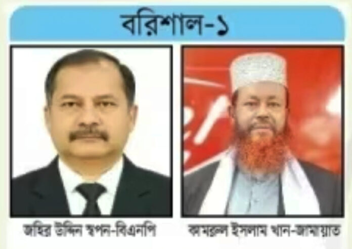 বরিশালে ৬ আসনের মধ্যে সবার দৃষ্টি মূলত বরিশাল—১ আসনের এর দিকে। এবার বরিশাল—১ (গৌরনদী—আগৈলঝাড়া) আসনে বিএনপির প্রার্থী হয়েছেন সাবেক এমপি জহির উদ্দিন স্বপন (বিএনপি), বাংলাদেশ জামায়াতে ইসলামীর ১০ দলীয় জোটের প্রার্থী মো. কামরুল ইসলাম খান (দাঁড়িপাল্লা), ইসলামী আন্দোলন বাংলাদেশের প্রার্থী রাসেল সরদার মেহেদী (হাতপাখা), বিএনপির বহিস্কৃত কেন্দ্রীয় নেতা স্বতন্ত্র প্রার্থী ইঞ্জিনিয়ার আবদুস সোবাহান (ফুটবল) ও জাতীয় পার্টি (জেপি) মনোনীত প্রার্থী ছেরনিয়াবাত সেকেন্দার আলী (বাই সাইকেল)।