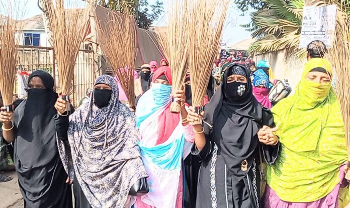 বিশেষ প্রতিনিধি: জামায়াতে ইসলামীর আমির ডা. শফিকুর রহমান কর্মজীবী নারীদেরকে কটূক্তি করার প্রতিবাদে বরিশালের বানারীপাড়ায় খেটে খাওয়া কর্মজীবী নারীরা ঝাড়ু মিছিল করেছেন। মঙ্গলবার ( ৩ ফেব্রুয়ারী) সকাল ১০টায় ফেরীঘাট থেকে শুরু হয়ে পৌর শহরের প্রধান সড়ক প্রদক্ষিণ শেষে ঝাড়ু মিছিলটি বাসস্ট্যান্ড চত্বরে গিয়ে শেষ হয়। এতে শতাধিক নারী অংশগ্রহণ করেন।