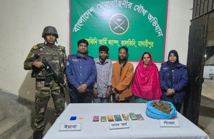 কালকিনি প্রতিনিধি: মাদারীপুরের কালকিনি উপজেলায় মাদকবিরোধী বিশেষ অভিযান চালিয়ে এক নারীসহ তিনজন মাদক ব্যবসায়ীকে আটক করেছে যৌথবাহিনী।