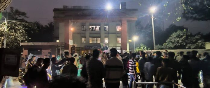 সুজন হোসেন রিফাত মাদারীপুর প্রতিনিধি: মাদারীপুর-১ আসনে বিএনপি প্রার্থীর নির্বাচনি প্রচারণায় কার্যক্রম নিষিদ্ধ, আওয়ামী লীগের নেতাকর্মীদের প্রকাশ্যে উপস্থিতির অভিযোগ তুলে তাদের গ্রেপ্তারের দাবিতে মাদারীপুরের শিবচর থানা ঘেরাও করে বিক্ষোভ কর্মসূচি পালন করেছেন ‘জুলাই যোদ্ধা’ পরিচয়দানকারী একদল যুবক। (৪ ফেব্রুয়ারি বুধবার) রাত ৮টায় শিবচর থানার সামনে এ কর্মসূচি অনুষ্ঠিত হয়। বিক্ষোভকারীরা ব্যানার-ফেস্টুন নিয়ে সমাবেশ করেন এবং থানার ভারপ্রাপ্ত কর্মকর্তা (ওসি)-এর কাছে একটি স্মারকলিপি জমা দেন।