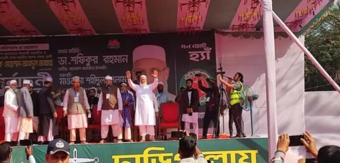 বরিশালে জনসভার মঞ্চে পৌঁছেছেন জামায়াতের আমির ডা. শফিকুর রহমান। নির্বাচনি জনসভার অংশ নিতে প্রথমবারের মতো বরিশালে পৌঁছেছেন তিনি। শুক্রবার (৬ ফেব্রুয়ারি) জেলার মেহেন্দিগঞ্জ উপজেলার পাতারহাট আর সি কলেজ মাঠ মাঠে সকাল পৌনে ১০টায় মঞ্চে উঠেন তিনি।