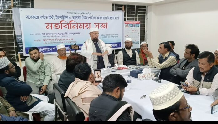 সাংবাদিকদের মাধ্যমে জাতি সে ঘটনার তথ্য উপাত্ত জানতে পারে। আসন্ন নির্বাচনকালীন যেকোনো ঘটনার সঠিক নির্ভরযোগ্য তথ্য পেতে সাংবাদিকদের সহযোগিতা কামনা করেন। মাওঃ মাহমুদুন্নবী তালুকদার বলেন, “আমরা একটি ইনসাফভিত্তিক সমাজ বিনির্মাণের লক্ষ্যে নির্বাচনে অংশগ্রহণ করছি। বাকেরগঞ্জের মানুষের অধিকার প্রতিষ্ঠা এবং অবহেলিত এই জনপদের সুষম উন্নয়ন নিশ্চিত করাই আমাদের মূল লক্ষ্য।”