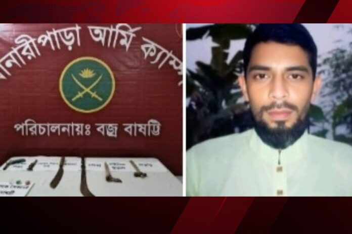 রাহাদ সুমন ,বিশেষ প্রতিনিধি: বরিশালের বানারীপাড়ায় সেনাবাহিনীর অভিযানে ফিরোজ সরদার নামের এক বিএনপি নেতার বাসা থেকে অস্ত্র উদ্ধার করা হয়েছে। তিনি বানারীপাড়া উপজেলা বিএনপির সদস্য ও উপজেলার বাইশারী ইউনিয়ন শ্রমিকদলের ভারপ্রাপ্ত সভাপতি।
