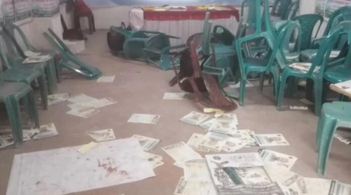 প্রত্যক্ষদর্শীরা জানান, সোমবার সকালে ৯টি মটরিসাইকেলে করে ২০ থেকে ২৫ জন বাবুগঞ্জ উপজেলার মাধপপাশা বাজার সংলগ্ন এবি পার্টির নির্বাচনী কার্যালয়ে অতর্কিতে হামলা চালায়। এ সময় তারা অফিসের আদবাবপত্র ভাঙচুর ও সেখা থাকা লিফলেট ক্ষতি করে চলে যায়। এ ঘটনায় আইনশৃঙ্খলা বাহিনীকে জানানো হয়েছে বলে জানিয়েছেন ওই প্রার্থী।