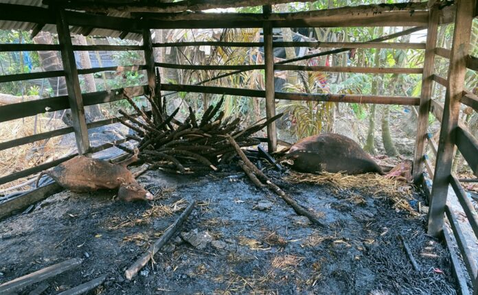 পিরোজপুরের মঠবাড়িয়া উপজেলার ৯ নং সাপলেজা ইউনিয়নের ৪ নং ওয়ার্ডের পূর্ব সাপলেজা গ্রামের ঝাটিবুনিয়া এলাকায় গভীর রাতে দুর্বৃত্তদের দেওয়া আগুনে ১ টি খড়ের গাদা ও গোয়ালঘর সহ ৩ টি গরু পুড়ে ছাই হওয়ার ঘটনা ঘটেছে । মঙ্গলবার (১০ ফেব্রুয়ারি ) দিবাগত রাত ১ টার দিকে ঝাটিবুনিয়া এলাকার বাসিন্দা মৃত ওহাব মুন্সির ছেলে আলতাফ মুন্সির বাড়িতে।