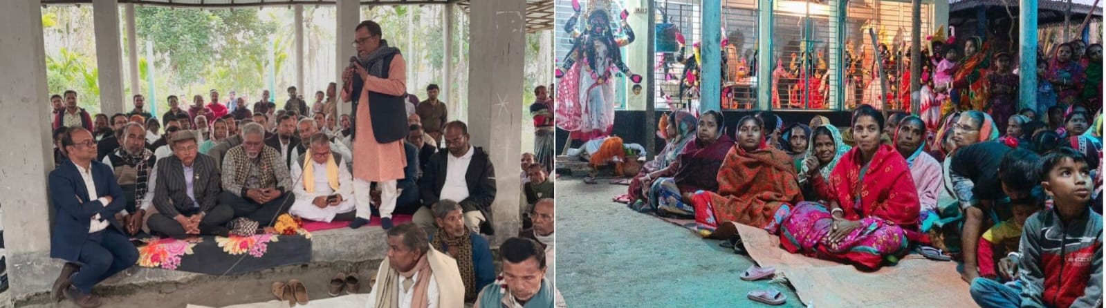 তেতলা সর্বজনীন কালি মন্দিরের সভাপতি বিমল হালদারের সভাপতিত্বে ও বলদিয়া মলুহার মাধ্যমিক বিদ্যালয়ের প্রধান শিক্ষক মিহির রায়ের সঞ্চালনায় অনুষ্ঠিত এ প্রার্থনা সভায় স্থানীয় হিন্দু সম্প্রদায়ের নেতৃবৃন্দ বক্তৃতা করেন।