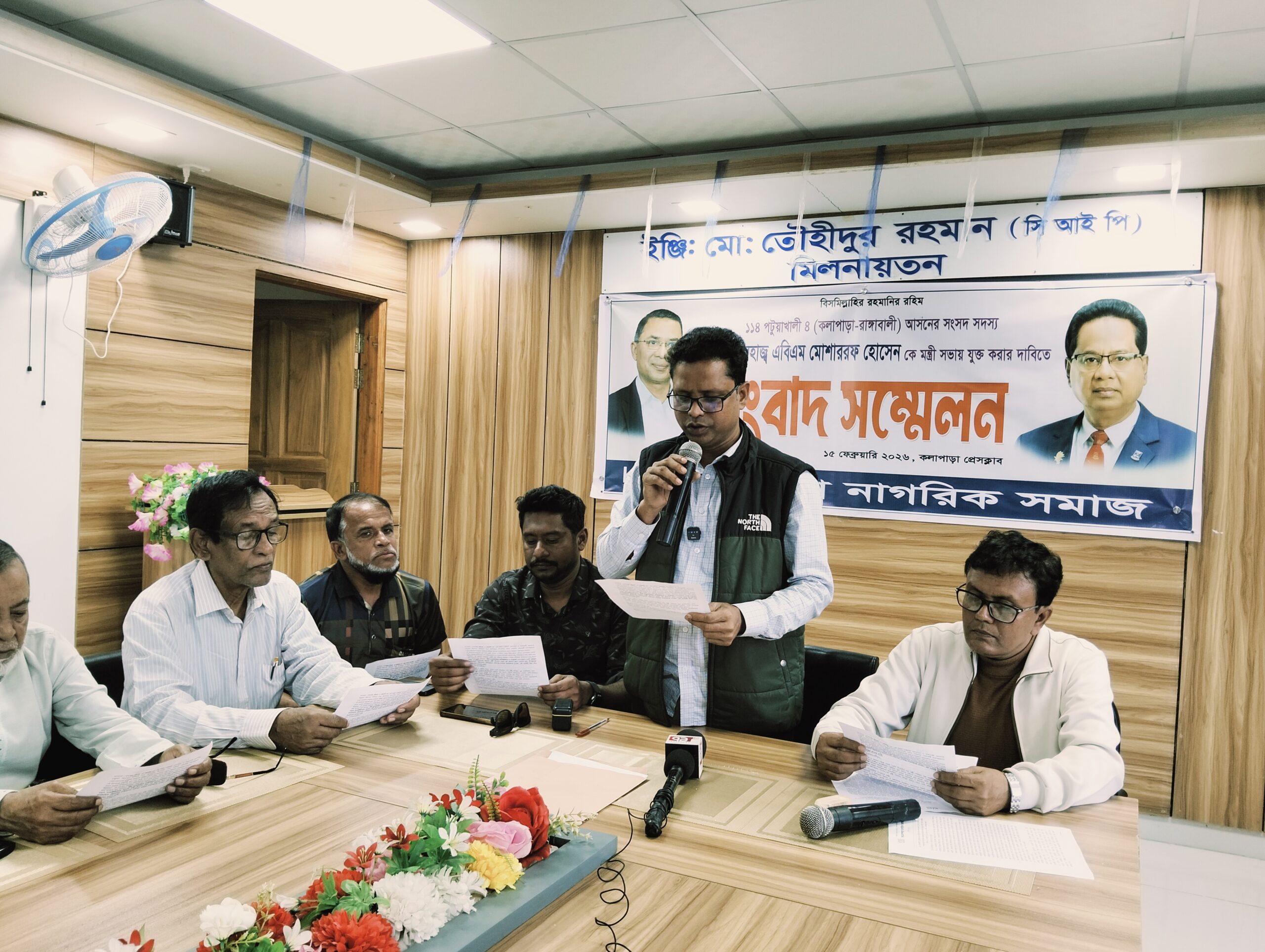 বাংলাদেশের আগামীর প্রধানমন্ত্রী তারেক রহমানের বিশেষ আস্থাভাজন হওয়ায় এবিএম মোশাররফ হোসেনকে মন্ত্রী সভায় স্থান করে দিবেন বলে আমরা শতভাগ বিশ্বাস করি। তাই এই গুরুত্বপূর্ণ জনপদকে আলোকিত জনপদে পরিণত করতে তাকে মন্ত্রিপরিষদের সদস্য করার জ্বোর দাবি জানাচ্ছি। সংবাদ সম্মেলনে কলাপাড়া নাগরিক সমাজ’র সমন্বয়কারী ইয়াকুব খান, সদস্য আব্দুল জলিল, তানজিল জামান জয় উপস্থিত ছিলেন।