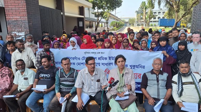 যাতে ট্রেড ইউনিয়নের মাধ্যমে শ্রমিকরা দাবি আদায়ে সংগঠিত হতে না পারে। এ হীন উদ্দেশেই ইউনিয়ন নেতৃবৃন্দকে চাকরিচ্যুত করা হয়েছে। আয়োজিত সংবাদ সম্মেলনে সোনারগাঁও টেক্সটাইল মিলের শ্রমিক নেতা মাসুম গাজী, ইমরান হোসেন, মোঃ জসীম হাওলাদার,হাবিবুর রহমান উপস্থিত ছিলেন।