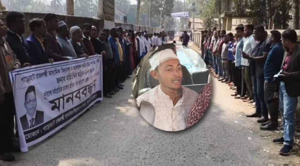 মঙ্গলবার (১৭ ফেব্রুয়ারি) সকাল সাড়ে ১১টায় উপজেলার পাড়েরহাট রাজলক্ষ্মী মাধ্যমিক বিদ্যালয় ও কলেজের সামনে শিক্ষক-শিক্ষার্থীদের আয়োজনে এ মানববন্ধন অনুষ্ঠিত হয়। মানববন্ধনে বক্তব্য রাখেন রাজলক্ষ্মী মাধ্যমিক বিদ্যালয় ও কলেজের ভারপ্রাপ্ত অধ্যক্ষ মো: মোস্তফা তালুকদার, সিনিয়র শিক্ষক উত্তম সাহা ও রাশিদা খানম প্রমুখ।