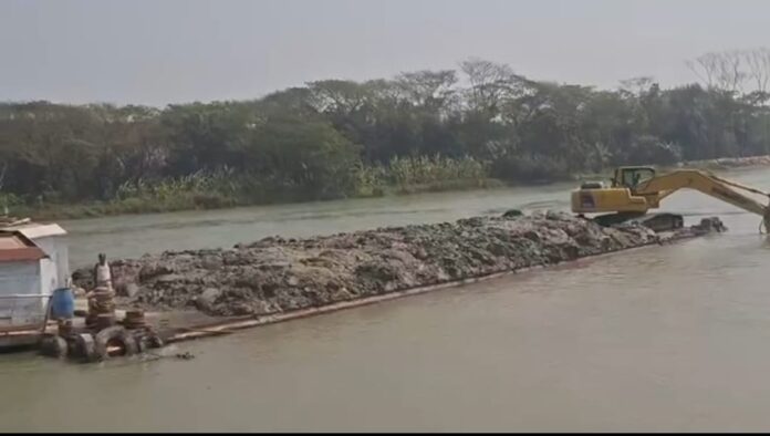 ভেকু মেশিনের মাধ্যমে নদীর তীর ও খাসজমি থেকে মাটি কেটে পল্টনে করে বিভিন্ন ইট ভাটায় নিয়ে বিক্রি করছে এই চক্র। মাটি কেটে নেওয়ায় নদীপারে তৈরি হয়েছে গভীর ক্ষত।