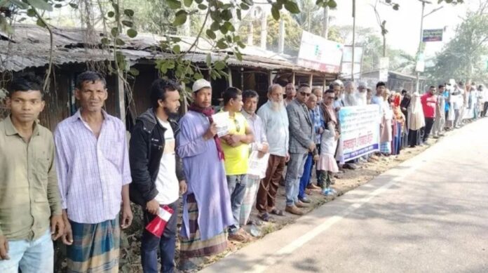ঝালকাঠির নলছিটি উপজেলায় ভূমি জরিপ কর্মকর্তাদের বিরুদ্ধে অনিয়ম ও ঘুষ-দুর্নীতির অভিযোগে মানববন্ধন ও বিক্ষোভ কর্মসূচি পালন করেছেন স্থানীয় ভুক্তভোগী ও এলাকাবাসী। মঙ্গলবার (১৭ ফেব্রুয়ারি) সকাল সাড়ে ১০টায় উপজেলার দপদপিয়া ইউনিয়নের বরিশাল-পটুয়াখালী মহাসড়কের চৌমাথা এলাকায় এ কর্মসূচি অনুষ্ঠিত হয়।