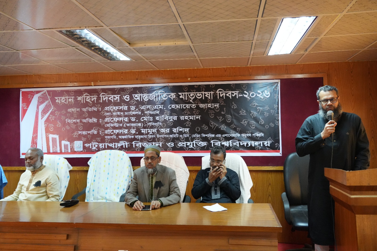 মেহেদী হাসান শান্ত, দুমকি প্রতিনিধিঃ গভীর শ্রদ্ধা, নীরবতা আর অঙ্গীকারে উদ্ভাসিত আবেগঘন পরিবেশে পটুয়াখালী বিজ্ঞান ও প্রযুক্তি বিশ্ববিদ্যালয়ে যথাযোগ্য মর্যাদায় মহান শহীদ দিবস ও আন্তর্জাতিক মাতৃভাষা দিবস-২০২৬ পালিত। দিনব্যাপী কর্মসূচির মধ্য দিয়ে ভাষা শহীদদের প্রতি জানানো হয় বিনম্র শ্রদ্ধা এবং মাতৃভাষার মর্যাদা অক্ষুণ্ণ রাখার দৃঢ় প্রত্যয়।