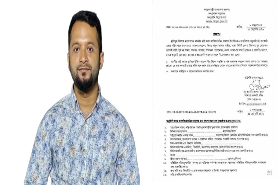ইউসুফ আহমেদ, ভোলা প্রতিনিধি: মুক্তিযুদ্ধ বিষয়ক মন্ত্রণালয়ের মন্ত্রী মেজর অব. হাফিজ উদ্দিন আহমেদ বীরবিক্রমের সহকারী একন্ত সচিব হিসেবে নিয়োগ পেলেন মো. আকবর হোসেন।