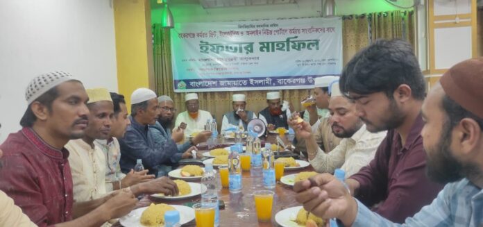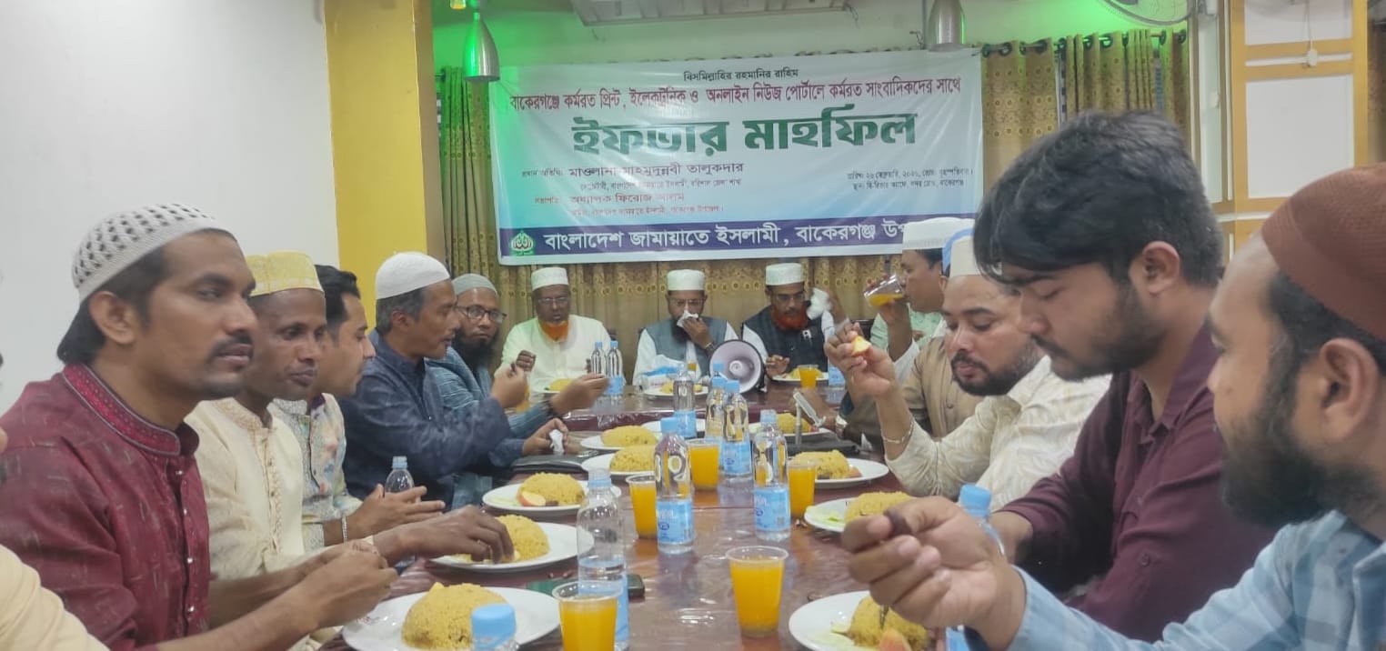 বাকেরগঞ্জে কর্মরত বিভিন্ন প্রিন্ট, ইলেকট্রনিক ও অনলাইন নিউজ পোর্টালে কর্মরত সাংবাদিকদের সন্মানে উপজেলা জামায়াতে ইসলামীর ইফতার মাহফিল অনুষ্ঠিত হয়েছে।