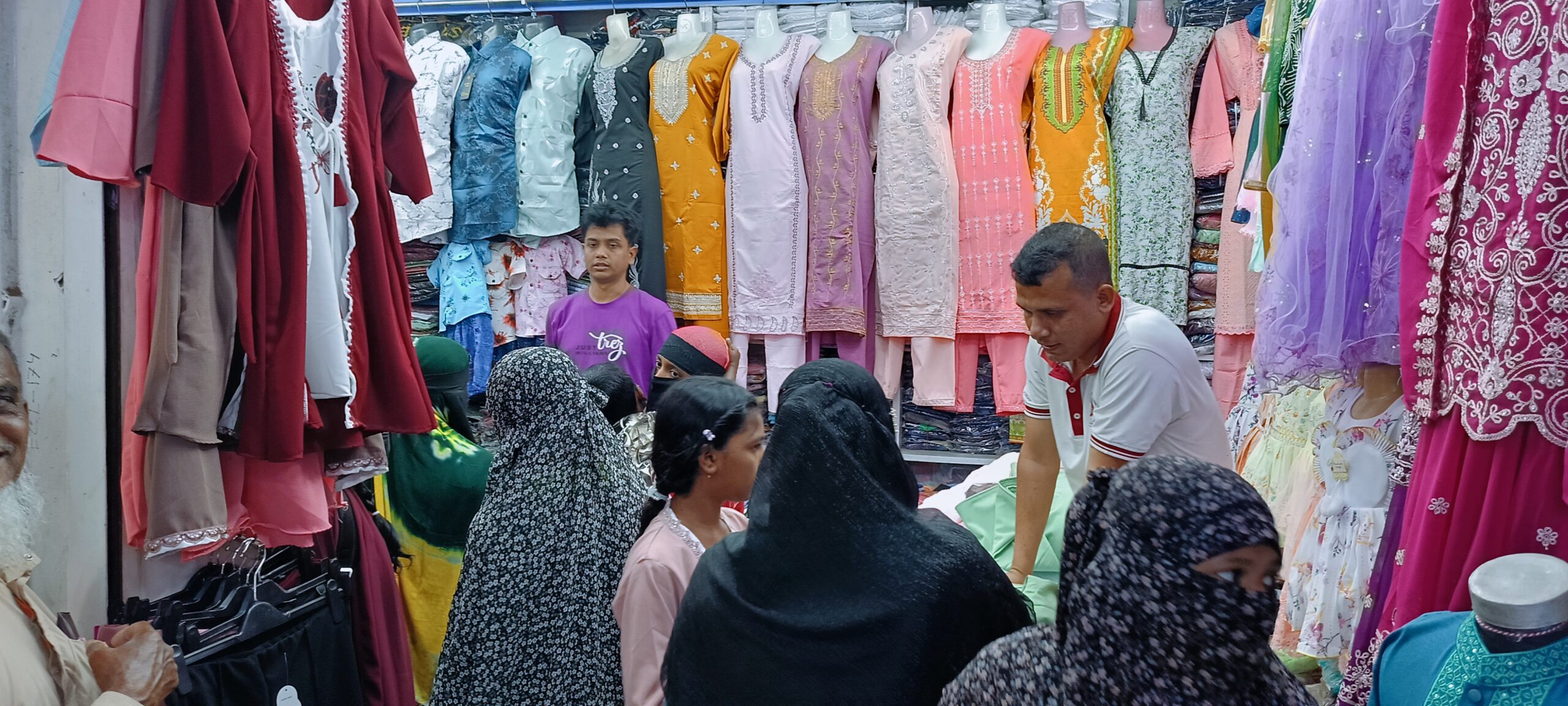 এছাড়াও স্বল্প আয়ের মানুষেরা ঈদের কেনাকাটা করতে পৌরসভার সদর রোডের ফুটপাতের গুলোতে ভিড় জমাচ্ছে। বিক্রেতারা জানান, মাসের শেষ বিধায় দোকানে তেমন ভিড় নেই, তাছাড়া ১৫ রমজানের পরে ক্রেতাদের উপস্থিতি বাড়বে।