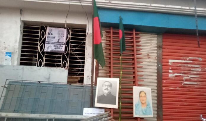 রাহাদ সুমন, বিশেষ প্রতিনিধি: দীর্ঘ ১৮ মাস পরে বরিশালের বানারীপাড়ায় কার্যক্রম নিষিদ্ধ, উপজেলা আওয়ামী লীগ কার্যালয়ে দলীয় পতাকা উত্তোলন এবং বঙ্গবন্ধু শেখ মুজিবর রহমান ও সাবেক প্রধানমন্ত্রী শেখ হাসিনার ছবি টাঙানো হয়েছে। শুক্রবার (২৭ ফেব্রুয়ারি) সকালে সামাজিক যোগাযোগ মাধ্যম ফেসবুকে এ সংক্রান্ত একটি ছবি ভাইরাল হয়।