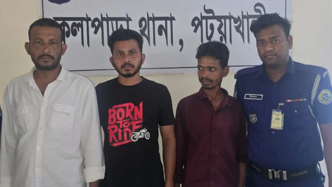 পটুয়াখালীর কলাপাড়ায় জেলেদের কাছ থেকে চাঁদা দাবি, মারধর ও মালামাল লুটপাটের অভিযোগে এক স্বেচ্ছাসেবক দল নেতাসহ তার দুই সহযোগীকে গ্রেপ্তার করেছে পুলিশ। রোববার (১ মার্চ) দুপুরে কলাপাড়া পৌর শহরের উকিল পট্টি এলাকায় অভিযান চালিয়ে তাদের গ্রেপ্তার করা হয়। গ্রেপ্তারকৃত প্রধান অভিযুক্ত সুমন ফকির নীলগঞ্জ ইউনিয়ন স্বেচ্ছাসেবক দলের আহ্বায়ক।