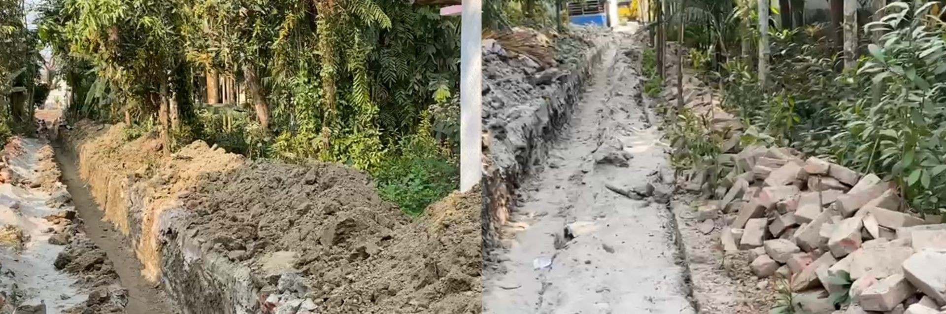 বর্তমানে নতুন শেচ প্রকল্পের বরাদ্দকৃত স্থাপনা মমিন মসজিদ ও কমিউনিটি ক্লিনিকের সম্মুখ রাস্তা থেকে নিলে, পাইপের মাথায় স্কুল মাঠ এরপরে মমিন মসজিদ পুকুর,আসলে আমরা বুঝি না এই পানি কোথায় যাবে?