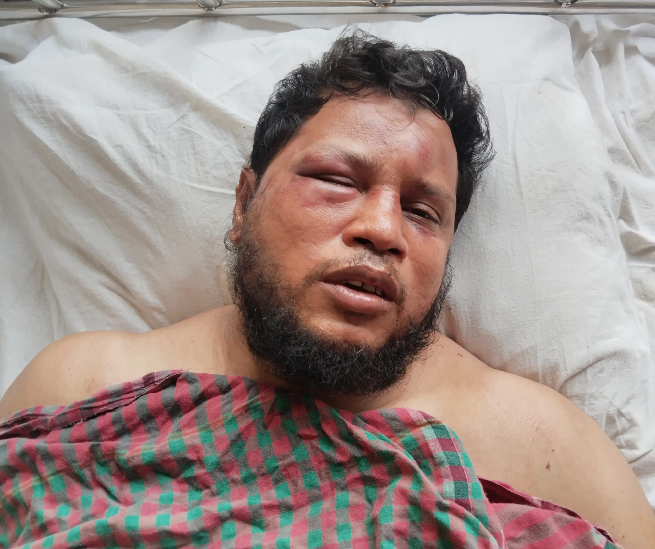 এসময় স্থায়নীয় লোকজনের কথায় আমি সেখান থেকে চলে যাই।পরে পিছন থেকে আওয়ামীলীগ নেতা কামাল মিঝির ভাই জামাল মিঝি ফিল্ম স্টাইলে এসে আমার মটর সাইকেলকে সজোড়ে ধাক্কা দিয়ে আমাকে ফেলে দিয়ে এলোপাতাড়ি ভাবে জামাল মিঝি,ফজলু মিঝি,তানভীর মিঝি,শরিফ মিঝিসহ আরও একাধিক লোকজন মিলে আমাকে কিল,গুসি, বুকে,পিঠে, পিটিয়ে গুরুতর আহত নীলা ফুলা জখম করে। একপর্যায়ে আমি মাঠিতে লুটে পরিয়ে ডাক চিৎকার দিলে স্থানীয় লোকজন এসে আমাকে উদ্ধার করে লালমোহন উপজেলা স্বাস্থ্য কমপ্লেক্সে ভর্তি করায়। ডাক্তার আমার শারীরিক অবস্থা খারাপ দেখে উন্নয়ন চিকিৎসার জন্য ভোলা রেফার করেন।