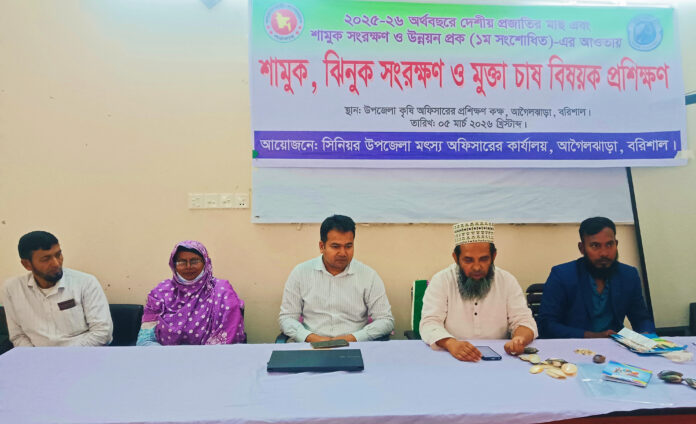 আগৈলঝাড়া (বরিশাল) প্রতিনিধিঃ বরিশালের আগৈলঝাড়ায় উপজেলা মৎস্য অফিসের আয়োজনে ২০২৫—২৬ অর্থবছরে দেশীয় প্রজাতির মাছ এবং শামুক সংরক্ষণ ও উন্নয়ন প্রকল্প এর আওতায় শামুক, ঝিনুক সংরক্ষণ ও মুক্তা চাষ বিষয়ক প্রশিক্ষণ কর্মশালা অনুষ্ঠিত হয়েছে।