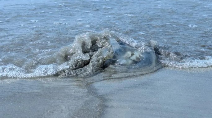 পটুয়াখালীর কুয়াকাটা সমুদ্রসৈকতের বিভিন্ন স্থানে ভেসে আসছে বিপুল মৃত জেলিফিশ। শুক্রবার (৬ মার্চ) দুপুরে তিন নদীর মোহনা, চর বিজয়, গঙ্গামতির চর, লেম্বুর বন, কাউয়ার চর, ফাতরার বনসহ সৈকতের বিভিন্ন অংশে ছড়িয়ে-ছিটিয়ে শত শত মৃত জেলিফিশ পড়ে থাকতে দেখা গেছে। স্থানীয় জেলেদের সঙ্গে কথা বলে জানা যায়, এর আগেও গত জানুয়ারি মাসের প্রথম সপ্তাহে কয়েক দিন ধরে কুয়াকাটার বিভিন্ন এলাকায় সাগর থেকে বিপুল পরিমাণ জেলিফিশ ভেসে এসেছিল।