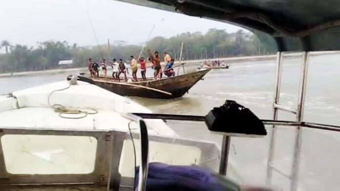 সরকারি নিষেধাজ্ঞা অমান্য করে জেলেরা অবৈধ বেহুন্দি জাল নিয়ে আজ সকালে আলীগঞ্জ এলাকায় মাছ শিকারে নামেন। গোপন সংবাদের ভিত্তিতে উপজেলা মৎস্য কর্মকর্তা মোহাম্মদ আলম ও হিজলা নৌ পুলিশের উপপরিদর্শক (এসআই) শাহীন আলমের নেতৃত্বে একটি দল নদীতে অভিযানে যান। ওই সময় ৮-১০ জন জেলে সংঘবদ্ধ হয়ে অভিযানে থাকা দলের ওপর হামলা চালায়। পরে পুলিশ কঠোর ব্যবস্থা নেওয়ার ঘোষণা দিয়ে স্পিডবোট নিয়ে ধাওয়া দিলে জেলেরা পিছু হটে।
