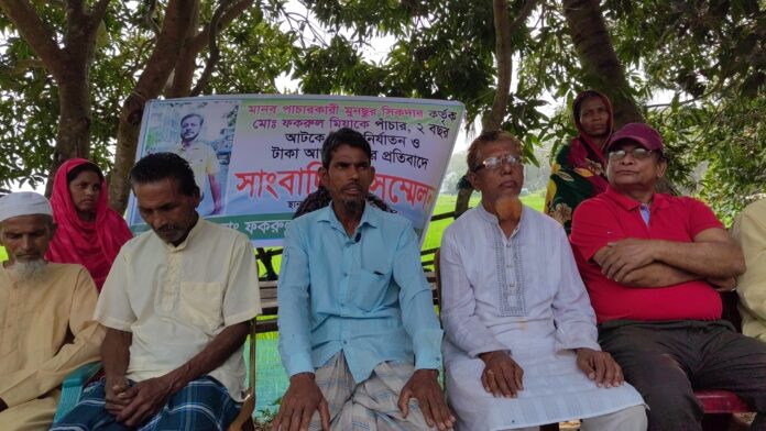 এরই প্রতিবাদে ভুক্তভোগী কৃষক লিবিয়া ফেরত মো ফকরুল মিয়া সংবাদ সম্মেলন কর এই অভিযোগ করেন। ভুক্তভোগী ফকরুল মিয়া জানান ২০২৩ সালে লিবিয়া হয়ে ইতালি যাওয়ার ইচ্ছা প্রকাশ করলে একই এলাকার মনছুর শিকদার ১৩ লাখ টাকার চুক্তিতে বডি কনট্যাক্টে ইতালে পৌঁছে দিবে এমন কথা বল্লে সে ( মনছুর শিকদার) আমাকে লিবিয়া নিয়ে দীর্ঘ আঠারো মাস নিদারুণ নিষ্ঠুর ভাবে সেখানে আটকে রাখে, পরে আমি অনেক কস্ট করে লিবিয়া থেকে বাংলাদেশ আসি,