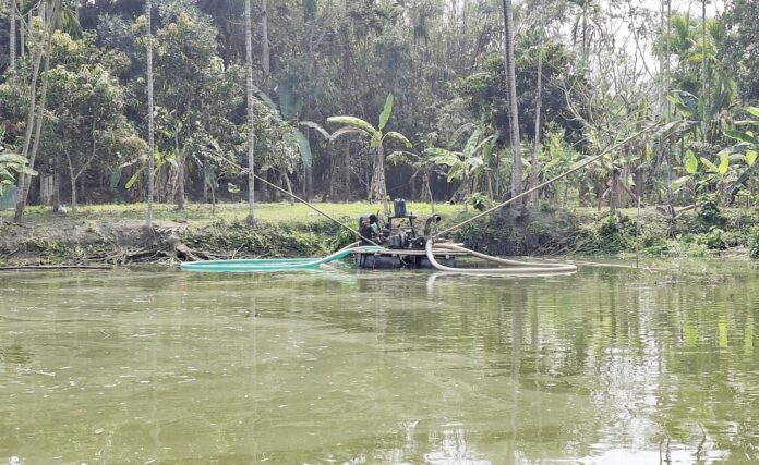 আগৈলঝাড়া প্রতিনিধিঃ বরিশালের আগৈলঝাড়ায় অবৈধ ড্রেজার মেশিন দিয়ে প্রশাসনের চোখ ফাঁকি দিয়ে পুকুর থেকে বালু উত্তোলন করে আসছেন টেমার গ্রামের উত্তম সিমলাই। এতে পাশ্ববর্তী চাষাবাদকৃত জমি ও রাস্তা ভেঙ্গে ক্ষতি হওয়ার সম্ভবনা রয়েছে। প্রতিকার চেয়ে তার ভাই প্রান কুমার সিমলাই উপজেলা নির্বাহী কর্মকর্তা লিখন বনিক এর কাছে লিখিত অভিযোগ দিয়েছেন।