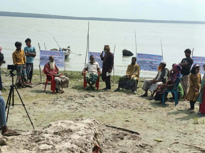 নদী বাঁচাও, মানুষ বাঁচাও এ স্লোগানকে ধারণ করে পরিবেশ ও জলবায়ু বিষয়ক নাগরিক সংগঠন ধরিত্রী রক্ষায় আমরা (ধরা), পাথরঘাটা উপকূল সুরক্ষা আন্দোলনের আয়োজনে শনিবার (১৪ মার্চ) পাথরঘাটা উপজেলার সদর পাথরঘাটা ইউনিয়নের বিষখালী নদী সংলগ্ন জিনতলায় স্থানীয় বাসিন্দারা নদী ভাঙ্গণের বেদনার কথা তুলে ধরেন পাশাপাশি নদী দখল দুষণমুক্তসহ ভাঙ্গণ রোধে সমনি¦ত পদক্ষেপের দাবিতে অনশণ করেন।