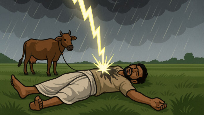 জসিম ঘরামী ওই গ্রামের কাশেম ঘরামীর ছেলে। শুক্রবার একটি বাড়িতে কাজ শেষে নিজের বাড়িতে ফেরার পথে তিনি বজ্রপাতে মারা যান।