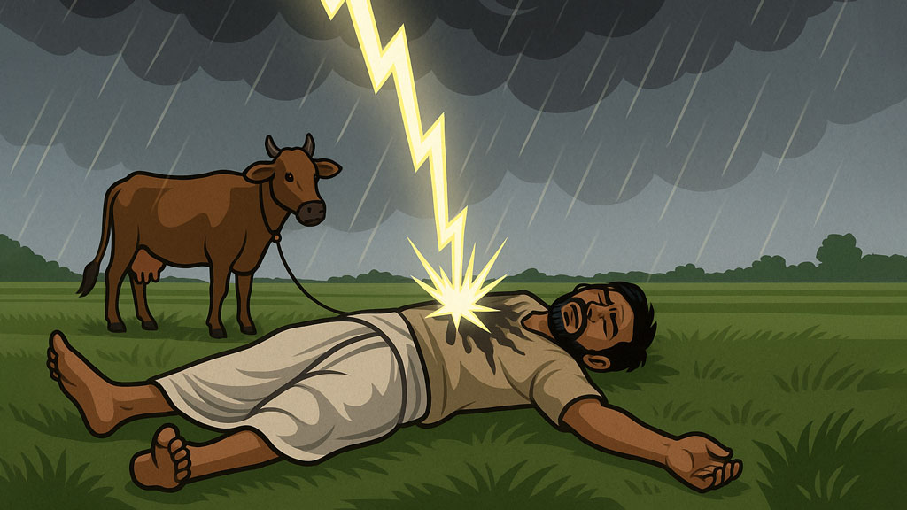 কৃষ্ণপুর গ্রামের বাসিন্দা মো. জাহিদুল ইসলাম জানান, সকালে জসিম ঘরামী একই গ্রামের একটি বাড়িতে কাজে যান। দুপুরের পর তিনি বাড়িতে ফেরার পথে রাস্তায় বজ্রপাতে মারাত্মক আহত হন। স্থানীয় লোকজন তাঁকে উদ্ধার করে উপজেলা স্বাস্থ্য কমপ্লেক্সে নিলে কর্তব্যরত চিকিৎসক জানান, জসিম আর বেঁচে নেই।